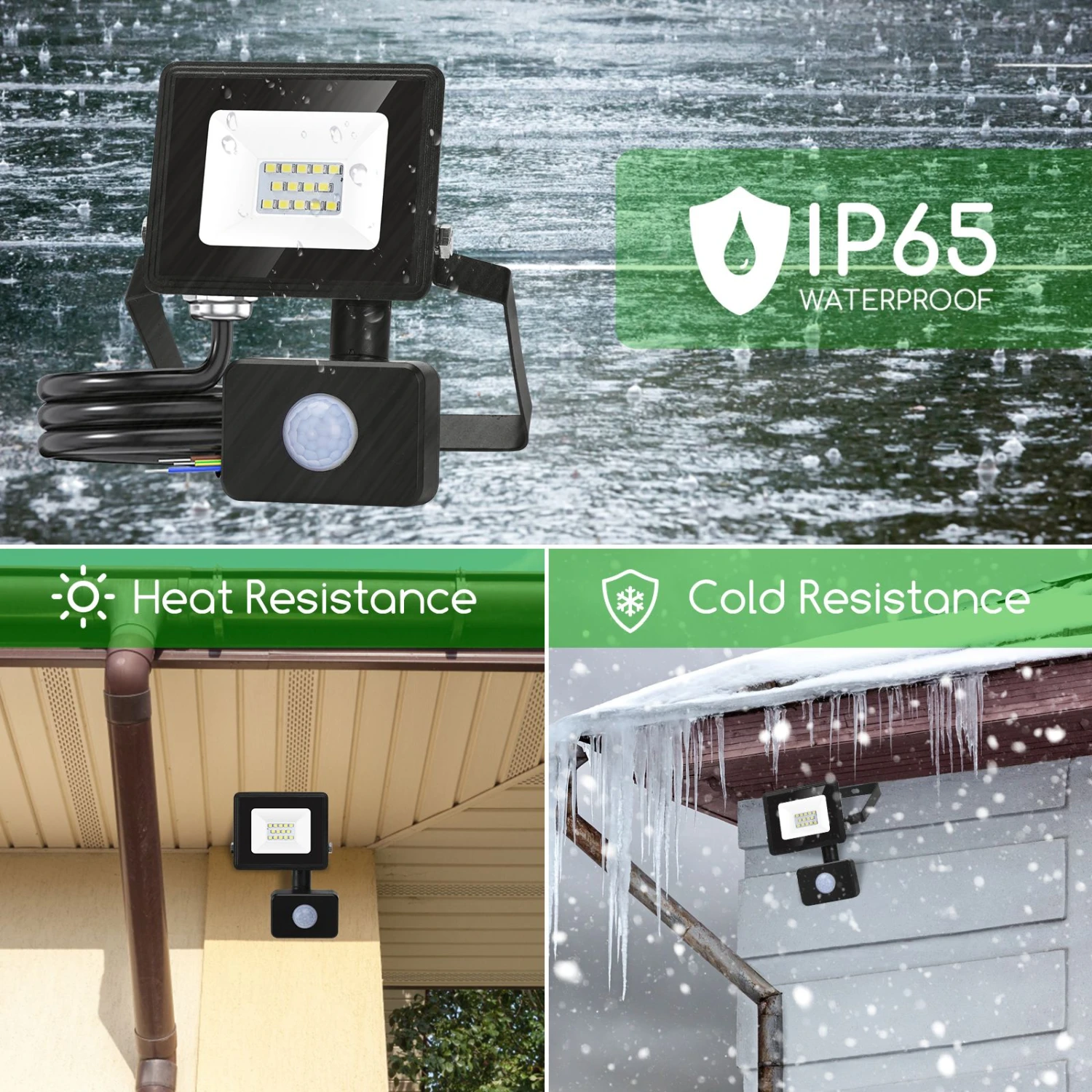【foco led exterior con 3 modos】los focos led aigostar disponen de sensor de movimientos tiene el modo time, el modo sens y el modo lux.mediante infrarrojos que funcionan durante el día y la noche ajustándolo, así mismo puede ajustar la sensibilidad de detección desde 2 hasta 8 metros. Así mismo también podrá configurar el tiempo de encendido desde 10 segundos a 7 minutos.△【iluminación superbrillante】foco exterior uso del chip led de alta calidad ofrece tres ventajas: alto brillo, alto ahorro de energía y vida larga. 10w foco led exterior puede reemplazar la bombilla incandescente tradicional de 90w, ahorrando más del 85% de energía, ahorrando dinero en su factura de electricidad.los lúmenes muy altos y un ángulo de luz de 120°te proporcionan una buena experiencia de iluminación.△【disipador de calor avanzado】la parte posterior de foco led exterior tiene un diseño de aleta gruesa y un área grande de disipación de calor, lo que significa que puede bajar rápidamente la temperatura y prolongar la vida útil de la lámpara led. Extiende la vida útil del proyector a más de 25,000 horas.△【su nivel de protección ip65】la aleación de aluminio fundido a presión en la tapa de vidrio templado, así como los reflectores son resistentes al calor, la corrosión e impactos. Además su nivel de protección es ip65 lo que garantiza resistencia a la lluvia, nieve y arena.puede brindarle una noche brillante y segura donde sea que esté instalado .△【iluminación profesional al aire libre】el foco led para exteriores tiene un soporte metálico ajustable.el soporte de metal ajustable ensanchado y grueso está montado en el techo, la pared y el piso para mayor estabilidad.colócala en cualquier lugar, incluyendo el garaje, el patio, la entrada o salida de casa, el jardín etc.