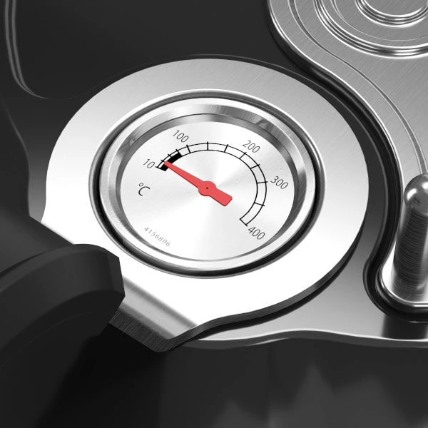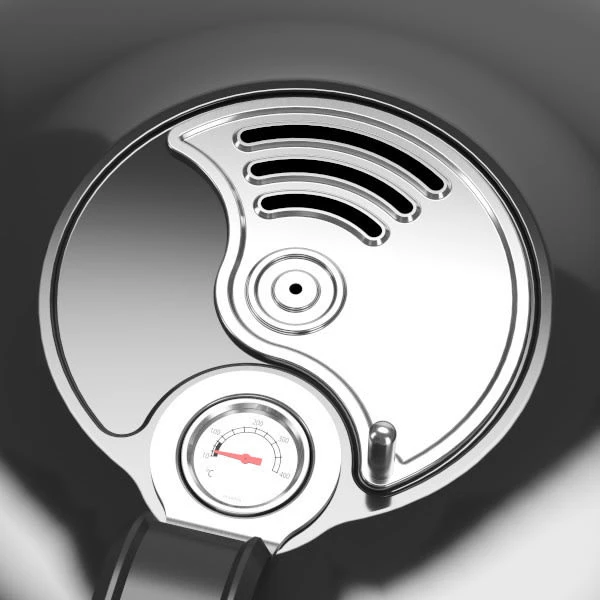 | Material | Acero (diferentes acabados) y acero inoxidable (parrilla). Material del recipiente y tapa: Acero esmaltado. Material de la estructura: Acero. Material de la parrilla: Acero inoxidable. |