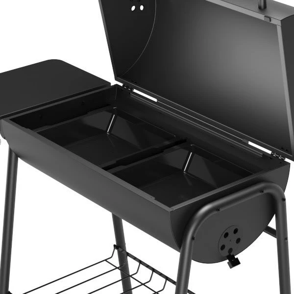 Barbacoa de carbón de doble parrilla, rectangular, con tapa Tehama de Good home, perfecta para reuniones de 10 comensales. Gracias a estar fabricada en acero inoxidable, esta barbacoa es resistente a la oxidación, por lo que se mantendrá en perfectas condiciones con el paso del tiempo.Su termómetro ayuda a controlar las temperaturas de cocción según alimento.Además incorpora sistema de ventilación, con lo que podrás ajustar el flujo de aire logrando que el carbón arda según la temperatura que necesites para los diferentes alimentos que cocines.Incluye 2 parrillas, bandeja lateral con 2 ganchos, asa grande para la tapa, parrilla inferior de apoyo.También 2 ruedas para moverla cómodamente al lugar que prefieras.