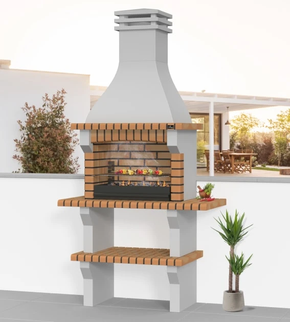 La barbacoa de obra Roma trae consigo todos los básicos para disfrutar de comidas y cenas al aire libre. La zona de cocción admite como combustible la leña pequeña y carbón. También permite adaptar cajones para la colocación de las parrillas y recogida de cenizas.
