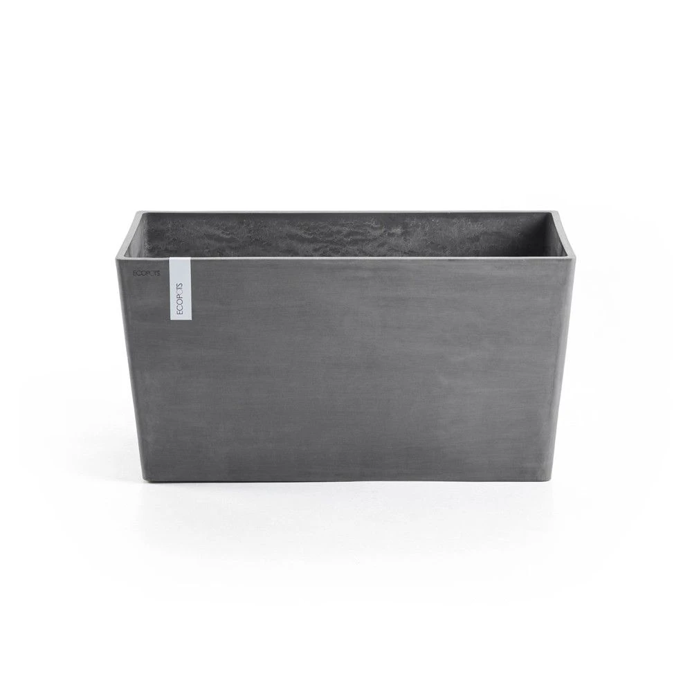 todos los ecopots están fabricados en de una fórmula única que contiene plásticos reciclados de primera calidad; y primer uso: 80%, el porcentaje más alto. Del mercado a 50 % pp y 50 % pe), 20 % minerales naturales reciclados para mejorar la durabilidad, la resistencia a los rayos uv y el aislamiento. Además de eso, nuestra textura especial hecha para la mano produce un producto simplemente incomparable.el ecopotsparis es un gran macetero diseñado para impresionar. Es ideal como separador de ambientes o como pantalla de privacidad. Para terrazas y balcones.ventajas del productoacabado en; hecho a manosostenible & sólidointerior & exteriordepósito de agua incluido2 pies para bloquear la olla incluidos.movimiento de la rueda móvil.< li>co² producto neutrocontenido reciclado certificado by polycert europeespecificaciones técnicascolor: grisforma: rectangular dimensiones (lxanxal): 99 x 46 x al. 50 cmpeso (en kg): 22volumen (en l): 170 resistente a los rayos uv: síresistente a las heladas: síagujero de drenaje: símontaje en pared ruedas: nosuspendido: nodepósito de agua: noopciones esponja de mantenimiento: 74.099.01