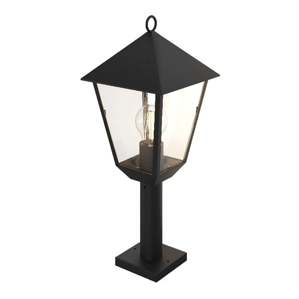 Farola de diseño tradicional para iluminar la zona exterior y adornar tu jardín. De alto 50 x ancho 20 cm y color acero inoxidable. Grado de protección IP44 con resistencia al agua. La bombilla no está incluida, puedes elegir entre nuestra gama el color de luz adecuado para el espacio a iluminar.