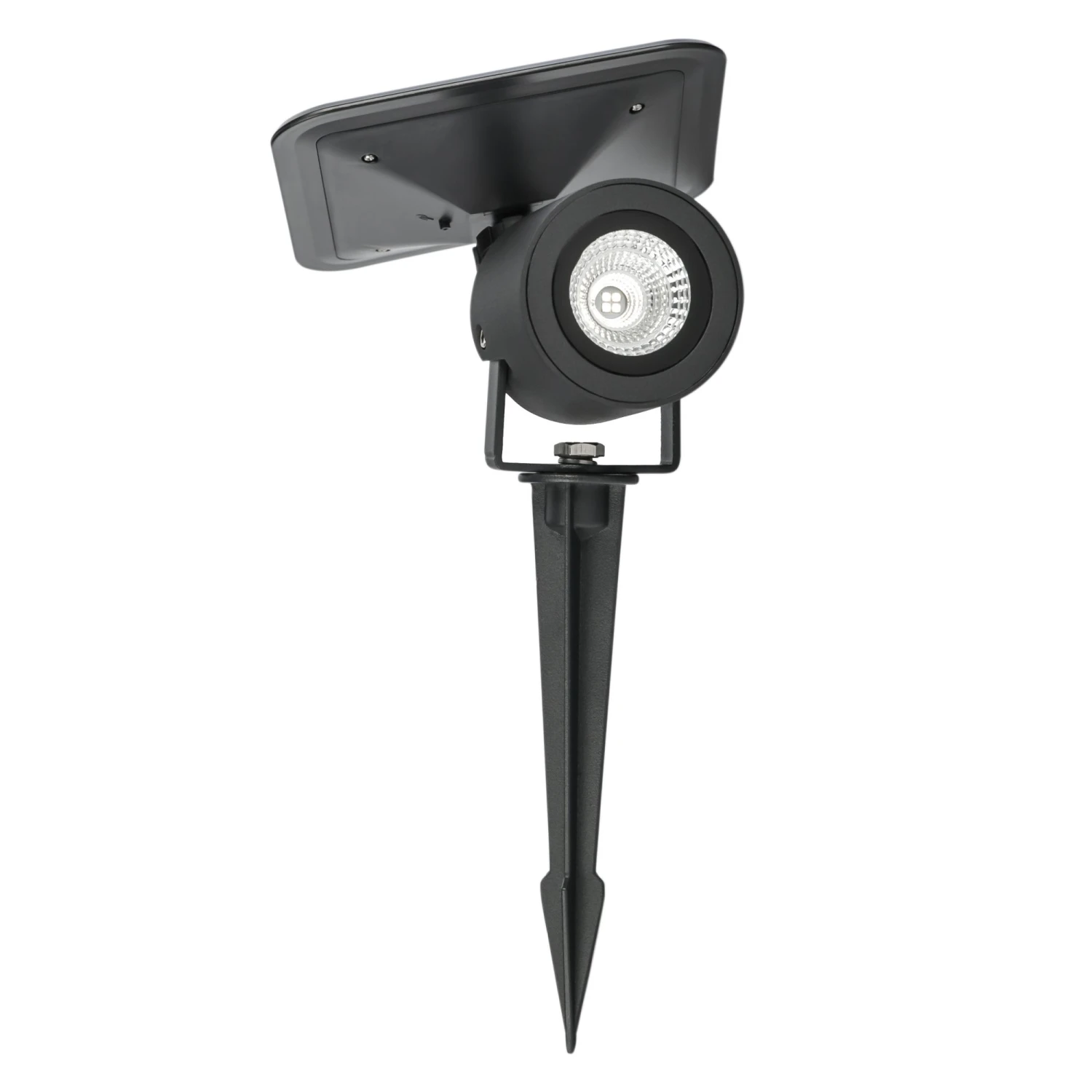 Pincho led 5w de jardín fabricado en aluminio de alta calidad y acabado negro. Dispone de una protección ip65 que permite su instalación en zonas muy expuestas al agua. Consta de una batería de litio de 2.7v y 1200mah que le aporta una autonomía de 12 horas tras su carga completa. Luz blanca neutra (4000k) de 210lm. Dimensiones: 17,5x17x21-36cm