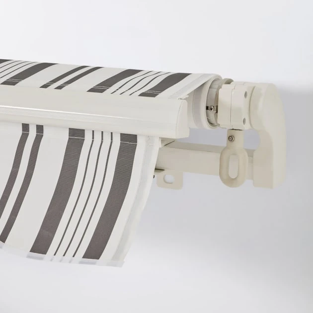 Toldo manual retráctil de aluminio y poliéster acabado en revestimiento de pintura en polvo. Una vez fijado en la pared ya puedes comenzar a disfrutarlo. Sus materiales son muy resistentes en exterior.La inclinación regulable de hasta 35º hará que se ajuste a tus necesidades. Además, es resistente a la corrosión y a los rayos ultravioleta (UV). Esto unido a que el tejido es impermeable te permitirá disfrutar de tu terraza a pesar de las inclemencias del tiempo.Además evitarás que aumente la temperatura del interior de tu hogar protegiéndolo del sol, contribuyendo a un menor consumo energético de aire acondicionado.Así, tu terraza quedará decorada de forma eficiente.Incluye manivela y los soportes de pared necesarios para que puedas instalarlo sin necesitad de material extra.Montaje con tornillos.